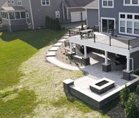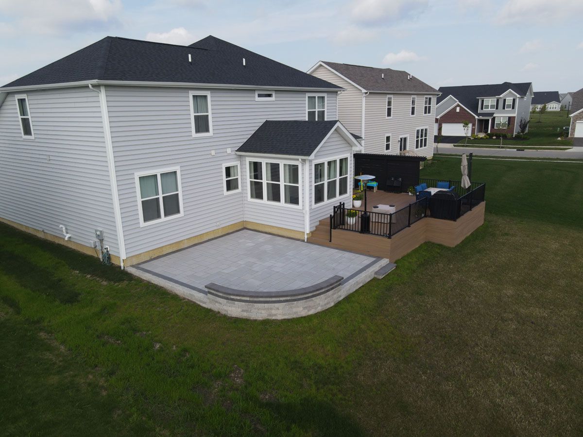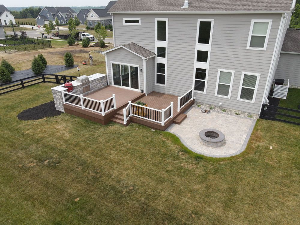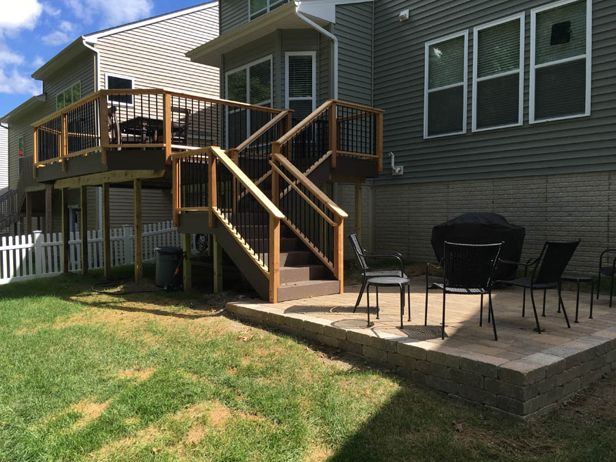Composite Deck with Cedar Rails and lower patio Gahanna |